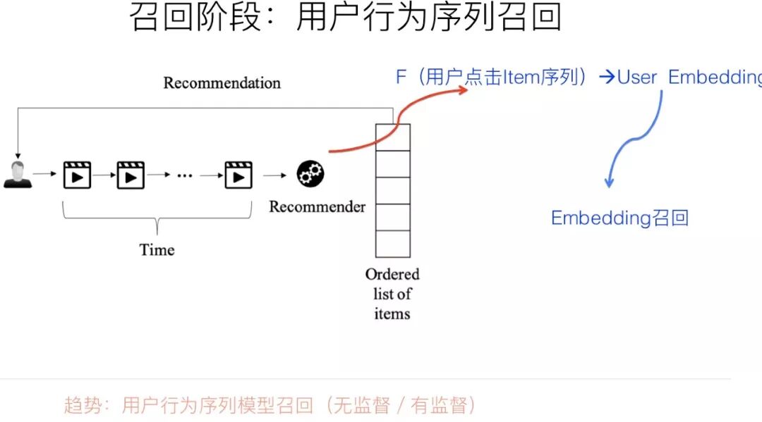 在召回阶段,如何根据用户行为序列打 embedding,可以采取有监督的模型,比如 Next Item Prediction 的预测方式即可;也可以采用无监督的方式,比如物品只要能打出 embedding,就能无监督集成用户行为序列内容,例如 Sum Pooling。而排序侧,必然是有监督的模式,需要注意的是:排序侧表征用户特征的时候,可以只用用户行为过的物品序列,也可以混合用户其它特征,比如群体属性特征等一起来表征用户兴趣,方式比较灵活。比如 DIEN,就是典型的采用混合模式的方法。