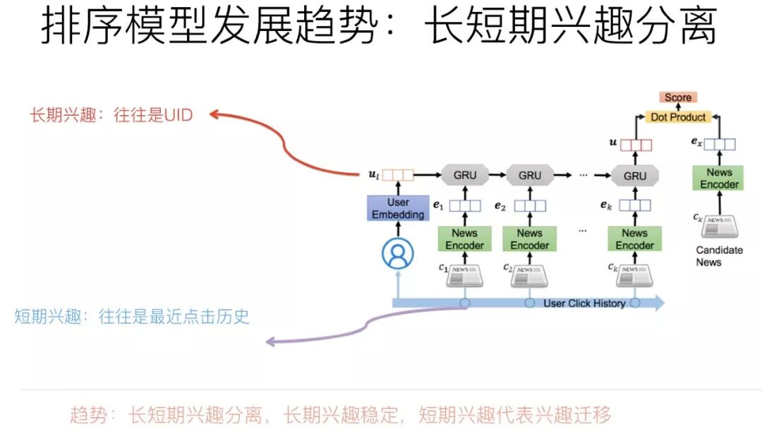 我们知道,用户兴趣其实是可以继续细分的,一种典型的分法就是划分为长期兴趣和短期兴趣。长期兴趣代表用户长久的比较稳定的偏好;而短期兴趣具有不断变化等特点。两者综合,可以从稳定性和变化性这个维度来表征用户偏好。