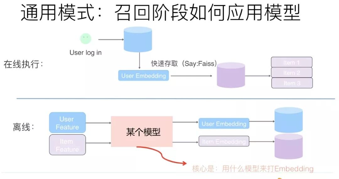 实际的工业推荐系统,如果粗分的化,经常讲的有两个阶段。首先是召回,主要根据用户部分特征,从海量的物品库里,快速找回一小部分用户潜在感兴趣的物品,然后交给排序环节,排序环节可以融入较多特征,使用复杂模型,来精准地做个性化推荐。召回强调快,排序强调准。当然,这是传统角度看推荐这个事情。