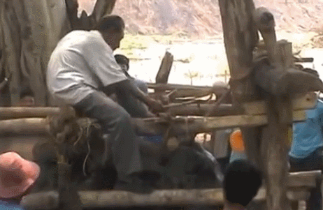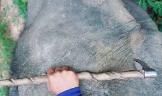 大象被象夫用镰刀扎伤。纪录片《黑象》视频截图。