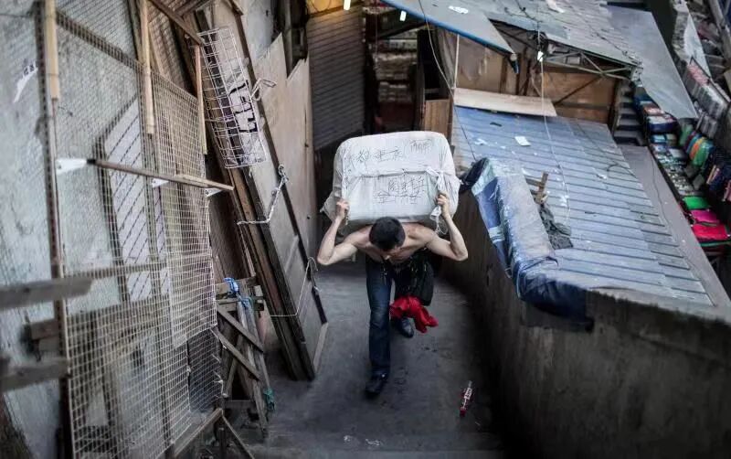 运输工具的变化,让“棒棒”们成为更广泛意义上的搬运工。他们用肩膀扛活,攒够一车就用推车送到楼下,再辗转换成带了电机的大推车,人坐在前面,车把手一扭,毫不费力。