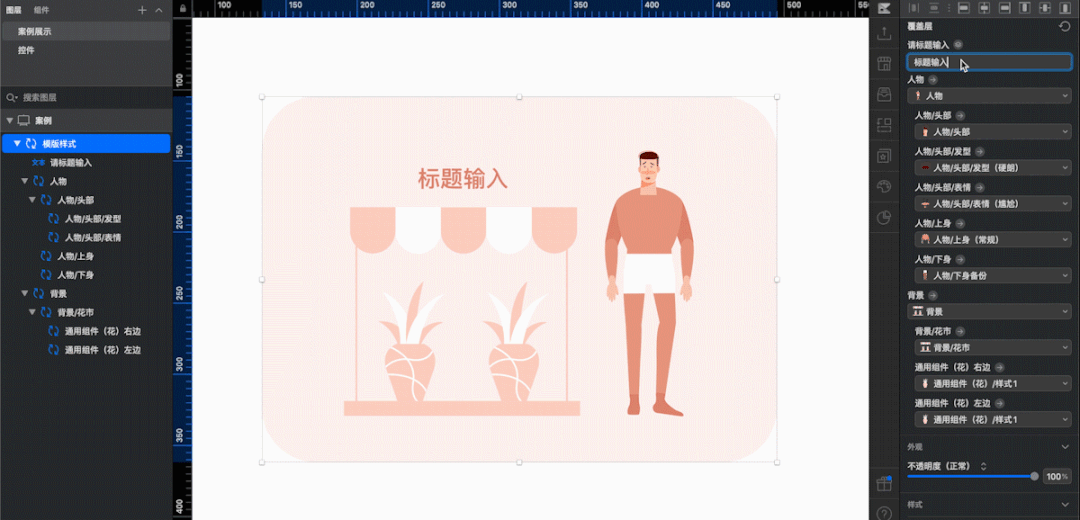的方式设计插画以及制作替换控件。先设计插画主体(组织:人物、通用、背景、其他),再细分主体的第二层级创建控件(分子:头部、上身、下身),最后再次细分最小元素创建控件(原子:发型、表情、通用样式等)。把层级确定好后,我们再到控件的内部添加它的组件。