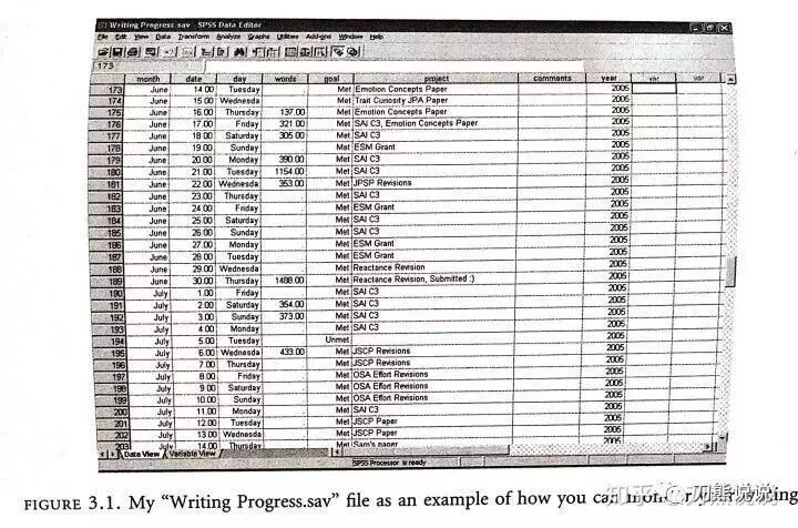 本书的作者非常善于记录自己的写作进展,他会把自己每天写作的时间、产出的字数、是否达成了当日目标等情况记录在一个excel 或spss表格里。他说大部分写作者并不知道自己的写作进展如何,这非常不利于达成长期写作目标。他认为严密记录自己的每日写作进展至少有三个大好处: