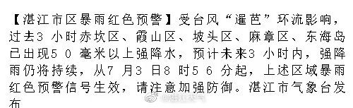 湛江市防汛IV级应急响应提升为Ⅲ级、
