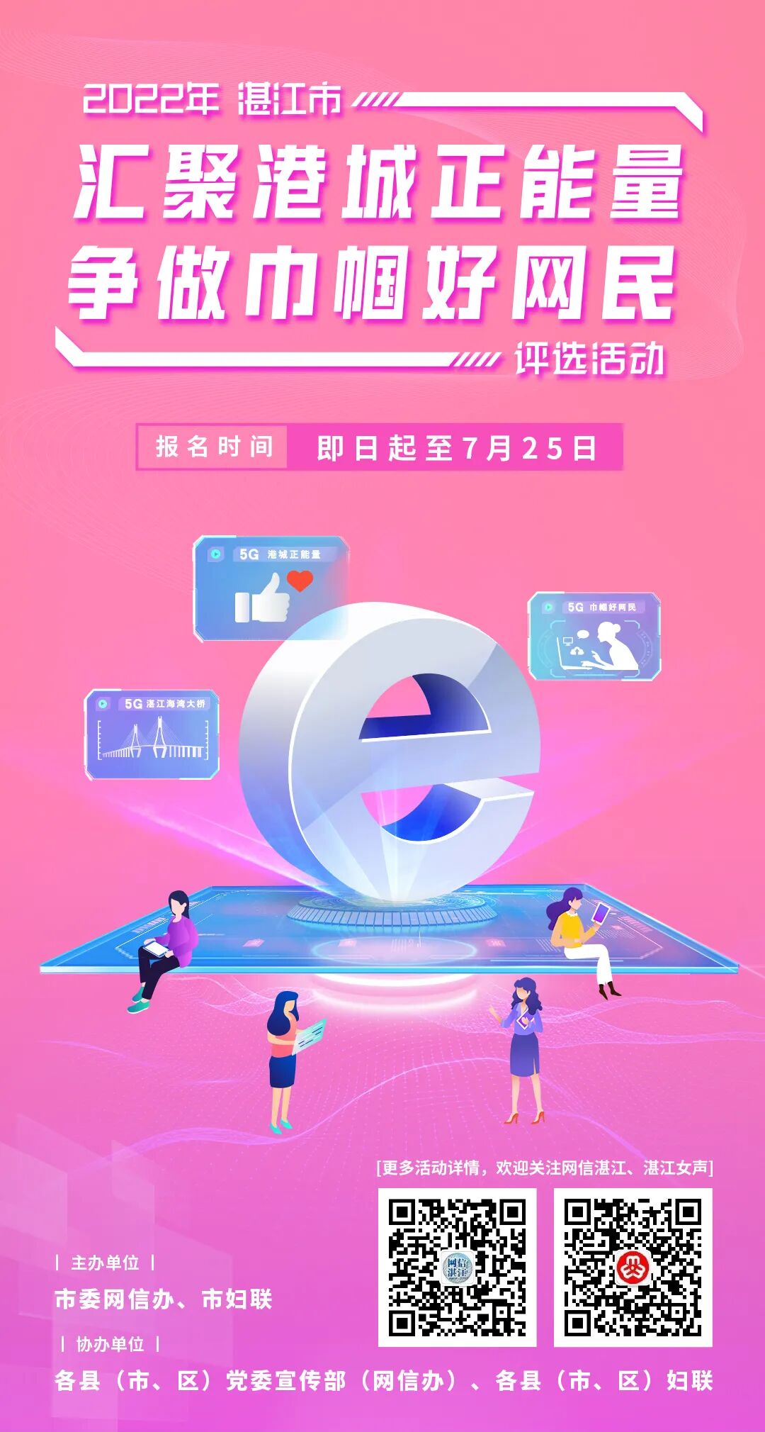 为深入贯彻习近平新时代中国特色社会主义思想特别是习近平总书记关于网络强国的重要思想以及关于妇女和妇女工作的重要论述,深入开展2022年湛江市网络文明宣传季系列活动,市委网信办、市妇联共同主办2022年湛江市“汇聚港城正能量 争做巾帼好网民”评选活动,在全市广大妇女群体中进行好网民评选,讲好新时代妇女事业发展和妇女故事,在网络空间凝聚起唱响主旋律、弘扬真善美、传播正能量的浓厚氛围,以优异成绩迎接党的二十大胜利召开。