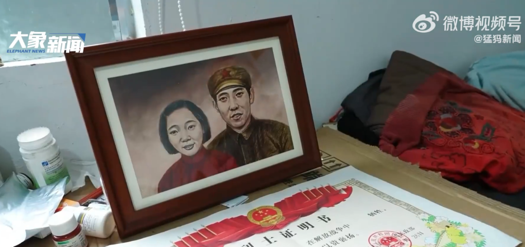 老人抚摸着画像潸然泪下