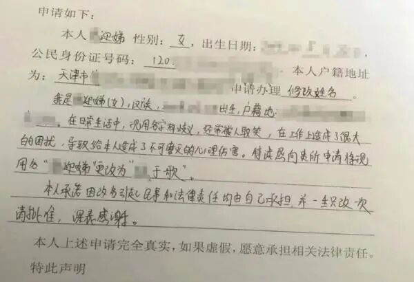 同样,常常被取笑的“迎娣”,也把名字改成了“于歌”。