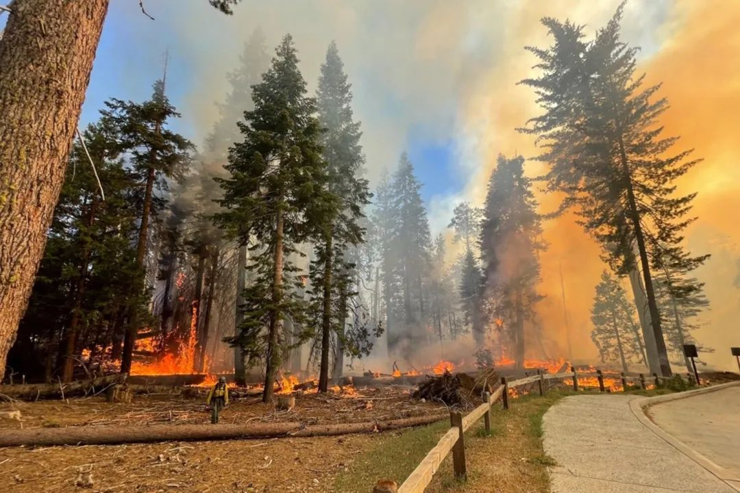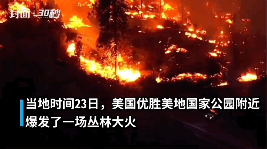 这是最近美国加州的一场山火,一夜之间,火将森林染成血红色。