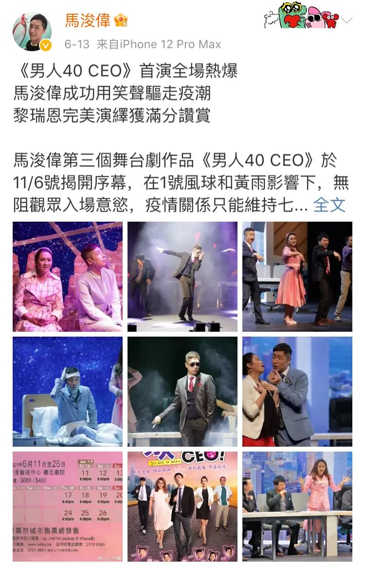 他也在做话剧,自编自导自演了《男人 40 CEO》。
