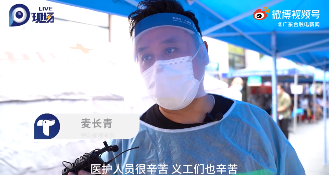 52 岁的麦长青被拍到在广州做志愿者,组织队伍做核酸。现在的他只偶尔做点直播,很少拍戏了。