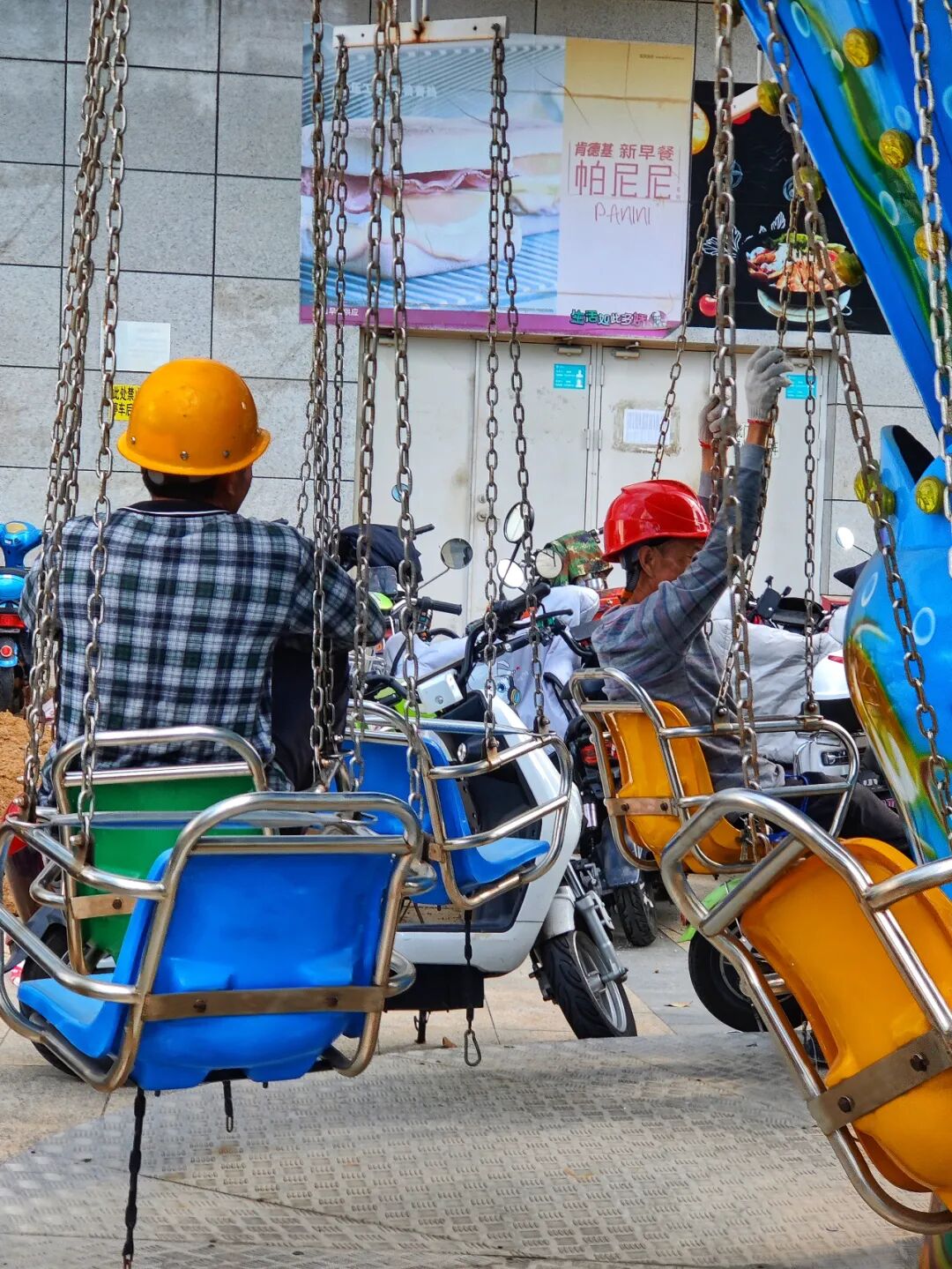他们抻着胳膊伸着腿,在彩色秋千上晃来晃去,开心得仿佛两个充满好奇心的小朋友。那一瞬间,因为项目压力和频频出差变得麻木的我,感觉到许久未有的雀跃。