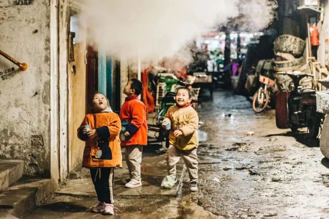 楼下三个小朋友蹦来蹦去,抓着一团厨房里冒出的水蒸汽玩得忘我。