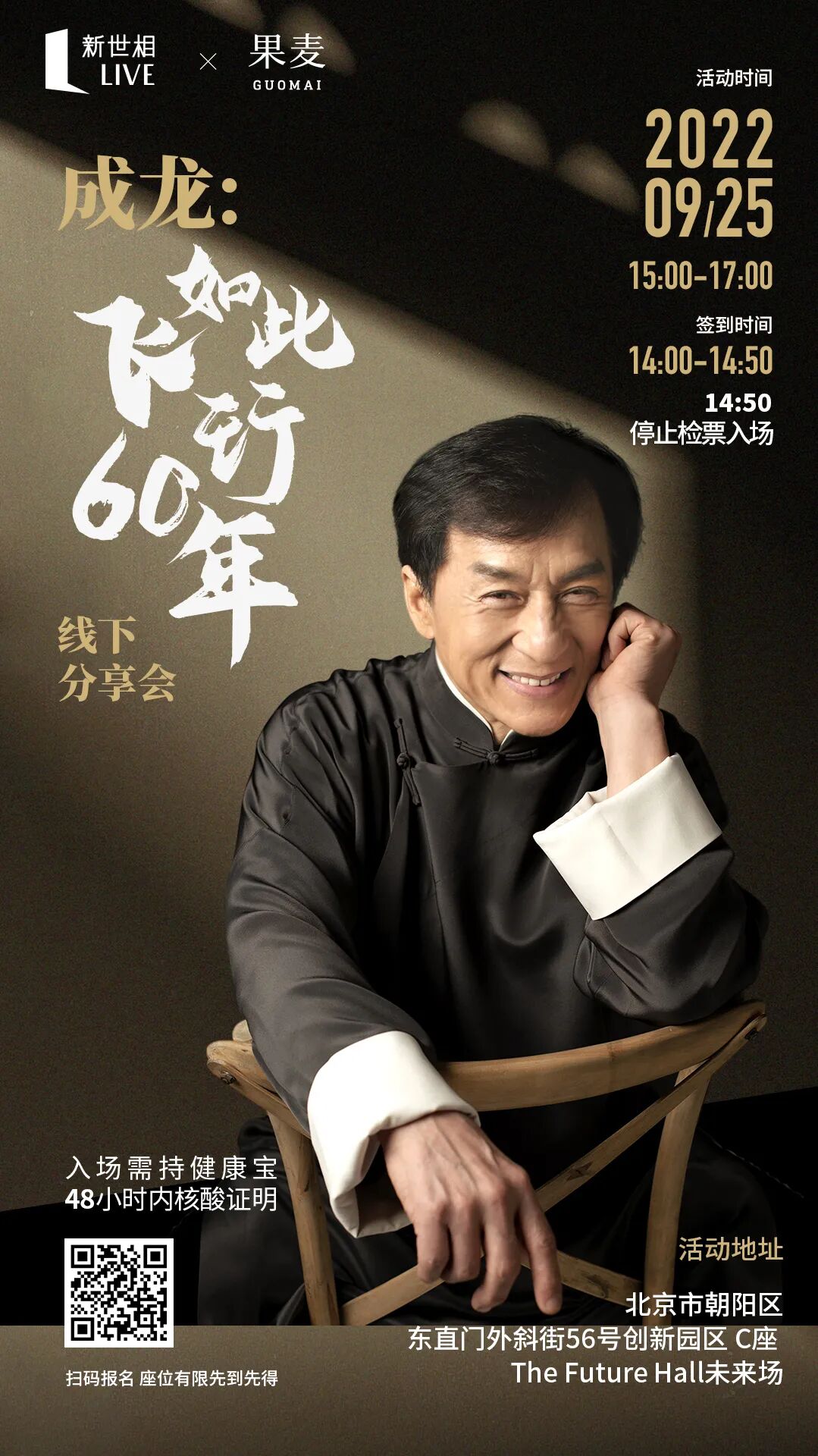 2022 年 9 月 25 日,如果你在北京,欢迎报名新世相 Live 成龙专场,听他讲自己的故事。