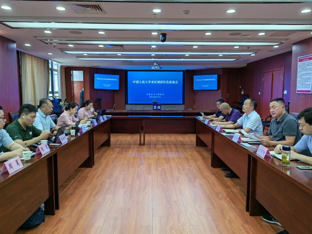 4月25日,习近平总书记到人民大学考察时强调,“希望广大青年用脚步丈量祖国大地,用眼睛发现中国精神,用耳朵倾听人民呼声,用内心感应时代脉搏,把对祖国血浓于水、与人民同呼吸共命运的情感贯穿学业全过程、融汇在事业追求中”。为深入贯彻落实习近平总书记重要讲话精神,8月18日-23日,按照学院统一工作安排,我院暑期调研团一行7人赴安徽合肥、芜湖、宣城、广德等地开展实地调研学习活动。安徽省是首批国家综合医改试点省份,也是我国县域医共体改革发源地。调研团由中国人民大学医改研究中心主任、公共管理学院教授王虎峰,学院党团学办公室主任、团委书记张世闯带队;健康政策与治理创新荣誉学位选修生2019级行管本科生董文、2020级土管本科生张骏腾、2020级城管本科生周夏,2020级硕士研究生(MPA)王宏、2021级博士研究生张昱参加;安徽省卫健委体改处处长马玉龙等同志全程陪同调研;安徽省卫健委副主任谢瑞瑾,芜湖市卫健委党委书记、主任秦正华,宣城市卫健委党组成员、副主任、市委保健办主任佘敦宇,宣城市广德市副市长江晓华,宣城市广德市卫健委党委书记、主任姚天顺等领导和医院管理者、基层医务人员近百人参加座谈交流。在调研活动即将结束时,谢瑞瑾副主任在合肥专门会见王虎峰等调研团代表,充分肯定了人大调研团深入医改第一线广泛调研交流和指导的务实工作,希望进一步加强交流合作,形成对安徽医改跟踪调研和评估的机制性安排,推进政学研高质量合作。