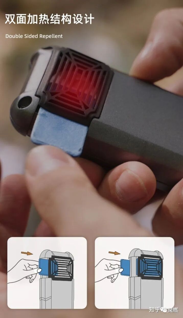手持款有两款,保护范围4.5平米,原理跟上边我的品胜一样,利用电加热蚊香片,只是内置了电池: