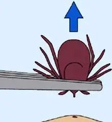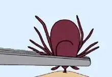 被蜱叮咬后也不用特别惊慌,自己完全可以处理,处理越快越好,用尖头镊子,镊子尖尽量靠近皮肤,然后紧紧夹住蜱头部或靠近头部的地方,缓慢用力,不要扭转或猛拉,不然蜱的头部就留在身体上了。如下图。