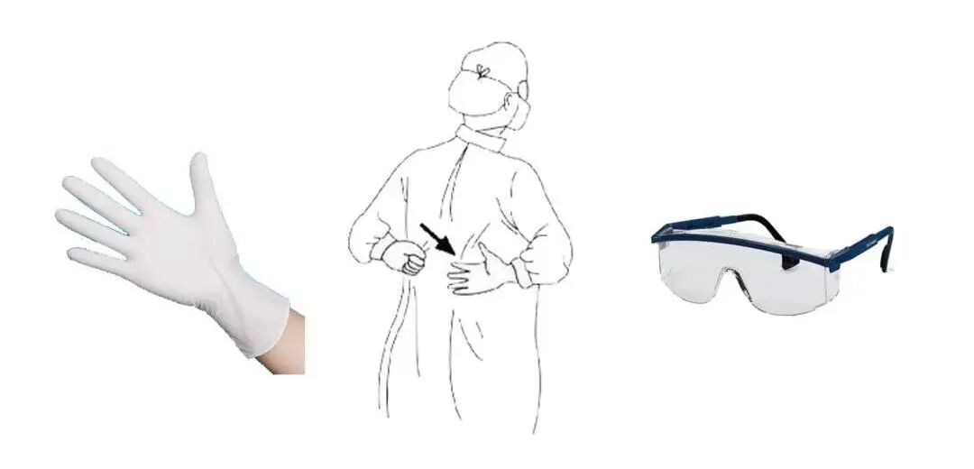 接触病人血液、体液、血性分泌物等时应戴乳胶手套,从事气管插管或其他可能产生喷溅的诊疗操作时,应穿隔离衣并戴外科口罩和护目镜。