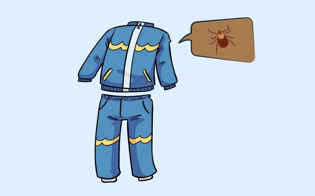 户外活动后要检查衣服上是否有蜱,浅色衣服有利于发现蜱。