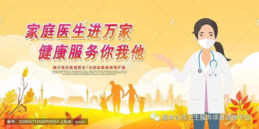 关注“基本公共卫生服务项目宣传平台”微信公众号,在公众号下方回复“家庭医生”四字即可免费下载宣传视频(共20个)。