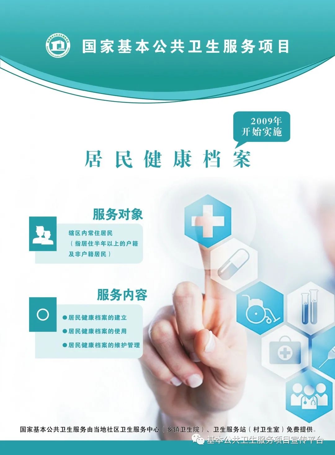免费服务内容:建立居民健康档案(包括个人基本信息、健康体检、重点人群健康管理记录和其他医疗卫生服务记录)、使用和维护管理