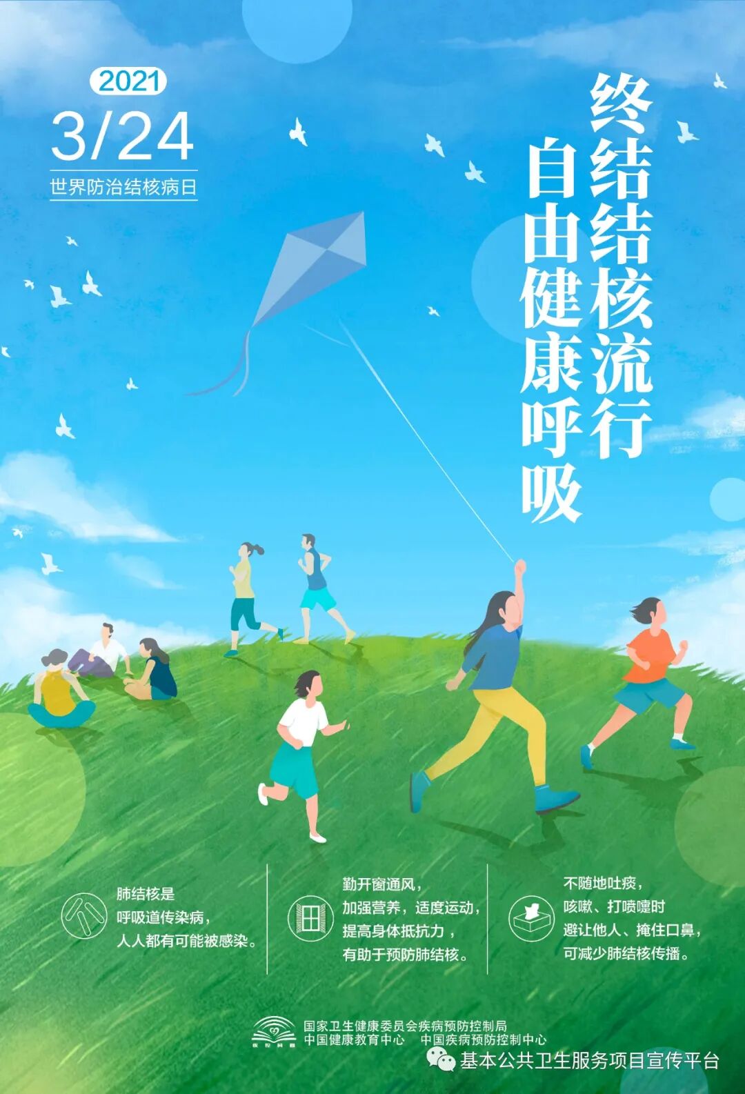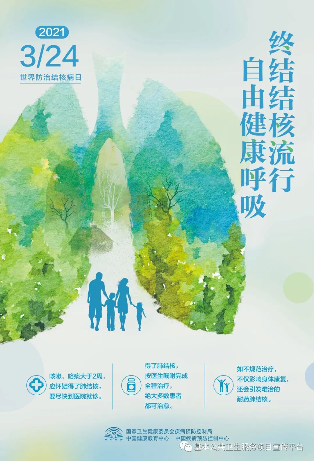 今年主题的寓意是:影响我们肺部健康、阻碍你我自由呼吸的传染病,不止有新冠肺炎,还有肺结核!过去的一年,举国众志成城,夺取抗击新冠肺炎疫情的重大战略成果。对于肺结核,我们还需加倍努力,才能尽早迎来终结结核流行、自由健康呼吸的那一天!在当前倾力迈向健康中国、奋力构建人类健康命运共同体的今天,加快步伐消除结核病的社会危害是全民共同的责任和担当,让我们赶快行动起来,只有分秒必争、奋蹄疾飞,才能早日实现没有结核病流行的世界,用清新自在的呼吸和健康快乐的人生造福我们自己和全人类。