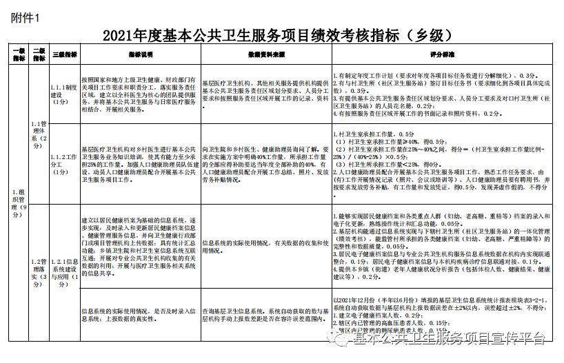 附件:1.2021年基本公共卫生服务项目绩效考核指标(乡级)