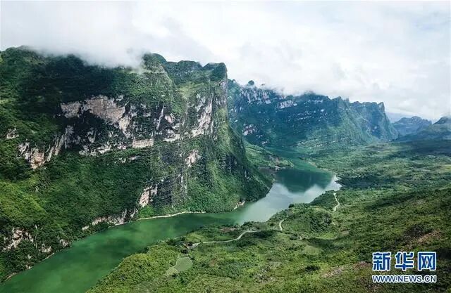 贵州北盘江大峡谷国家湿地公园风景(无人机照片,2018年8月7日摄)。新华社记者 陶亮 摄