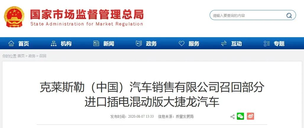 日前,克莱斯勒(中国)汽车销售有限公司根据《缺陷汽车产品召回管理条例》和《缺陷汽车产品召回管理条例实施办法》的要求,向国家市场监督管理总局备案了召回计划。决定自2020年8月7日起,召回2017年8月21日至2019年10月21日期间生产的部分进口插电混动版大捷龙汽车(Pacifica PHEV),共计1643辆。