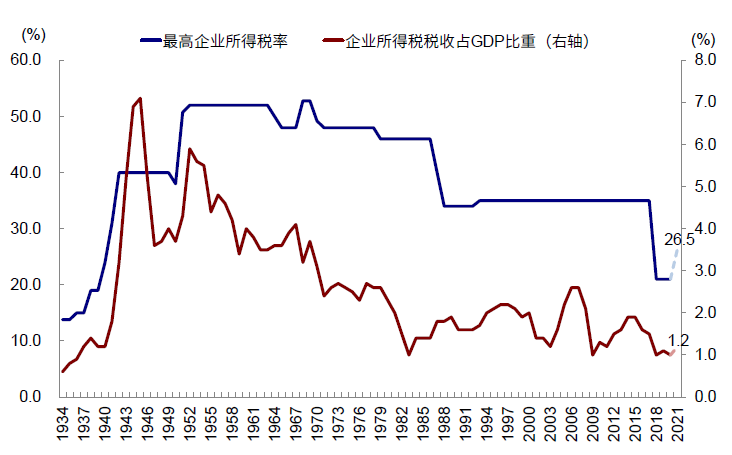 图表28:众议院民主党提议将企业最高税率从21%上调到26.5%