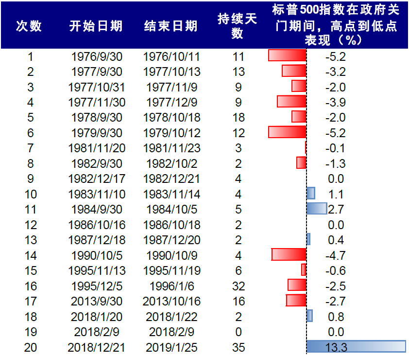 70年代以来,美国政府关门共发生20次,特朗普总统时期就出现过两次因无法达成拨款协议而关门,但整体对市场影响相对有限。