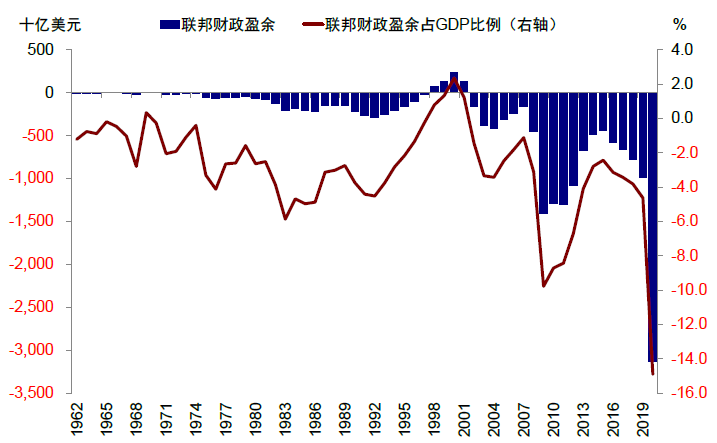 图表4:美国2020年财政赤字达3.1万亿美元,占GDP比例达14.9%...