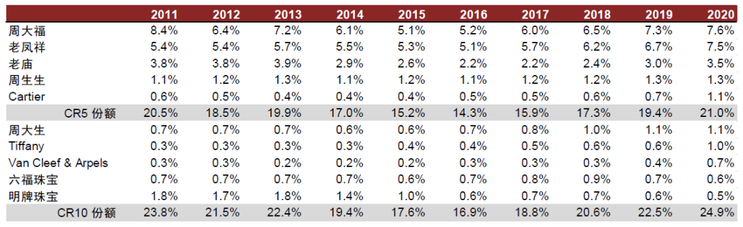 传统珠宝首饰:市场份额有望进一步向头部集中
