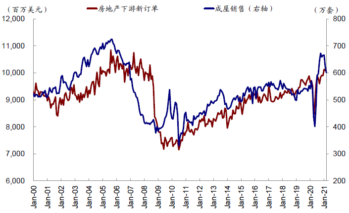 图表:成屋销售和下游商品新订单高度相关