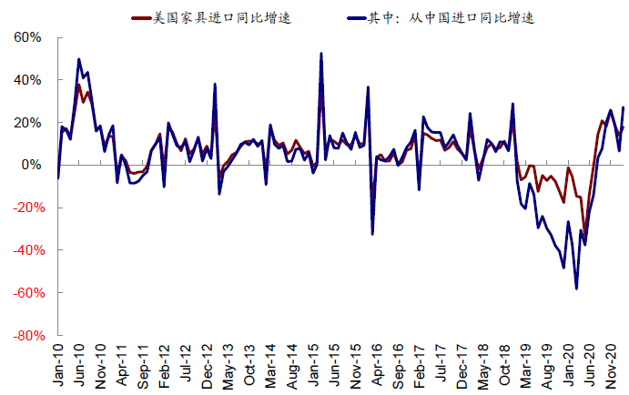 图表:家具进口增速显著,中国份额38%左右…