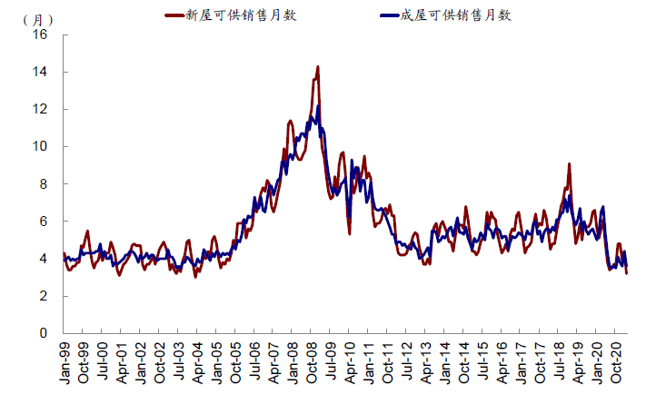 图表: 当前房屋可供销售月数均降至低位