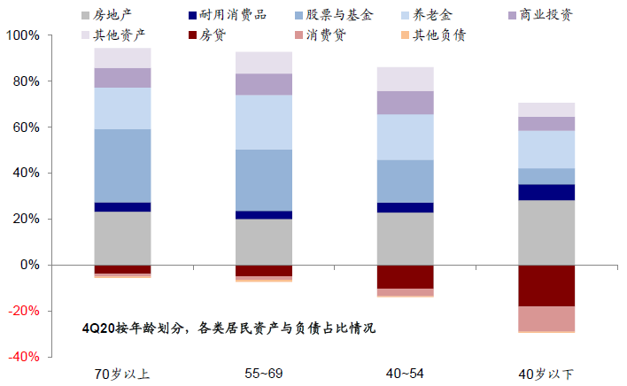 图表:按年龄划分,各类居民资产与负债占比情况
