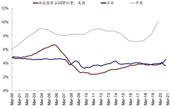 图表:美国住宅投资占GDP比重显著低于中国