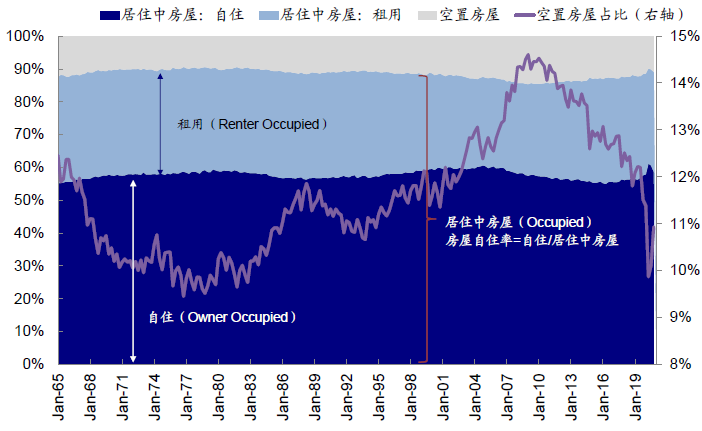 图表:房地产市场主要分为空置、自住和租用房屋
