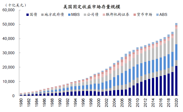 图表:MBS占美国固收市场规模比重仅次于国债