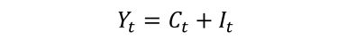 假设经济体由家庭和企业两个部门组成。企业生产消费品,然后将消费品卖给家庭。家庭提供资本,通过入股或借债将资本提供给企业。在不考虑政府及国际贸易的情况下,第t期的总产出可以按支出法表示为