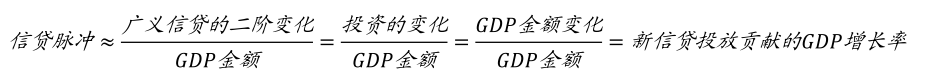 “信贷脉冲”由德银经济学家Michael Biggs提出[1],定义为新增广义信贷占GDP比值的变化。由于新增广义信贷是信贷存量的“一阶变化”,而“信贷脉冲”是新增信贷经过GDP标准化之后的“一阶变化”,所以“信贷脉冲”是信贷存量的“二阶变化”。作为对比,业内使用较多的信贷指标“社融存量同比”计算的是信贷存量的变化与信贷存量的比值,反映信贷存量的“一阶变化”。