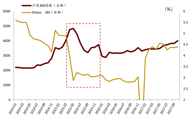 例如,2015年上半年,股市实际表现与信贷脉冲对于同期股市的预测值走势出现了局部偏离(图表2),沪深300指数从2014年11月28日的2809点迅速增长至2015年6月12日的5335点,增长幅度达到90%,对应期间信贷脉冲领先指标维持低位,即这一阶段指数的上涨并非以信贷边际增速为支撑。这一短暂偏离可能由于当时我国经济基本面较弱,制造业面临产能过剩压力,房地产行业受政策调控表现也较为低迷,实体经济对于信贷需求不足(图表13-16)。而央行为刺激经济,自2014年底开始采取一系列降息降准的货币政策,引导市场利率下行,推升了以股票为代表的风险资产的估值,叠加同期场外配资规模大幅增加,推高了杠杆水平,造成2015年上半年股市与信贷边际增速走势短暂背离。