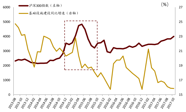 图表15: 2015年股市上涨同期基建增速同比出现下滑