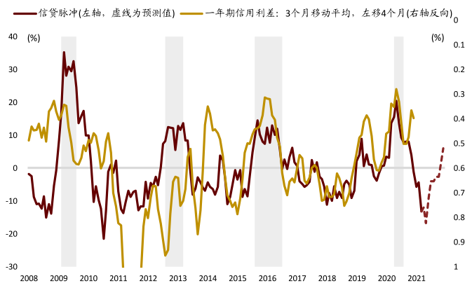 图表4: 信贷脉冲领先1年期信用利差4个月左右