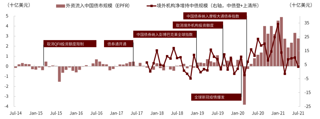 *注:EPFR与中债登、上清所所统计的外资机构口径存在差异,前者主要包括境外主动及被动型基金,后者为人民银行批准的所有境外机构,包含前者