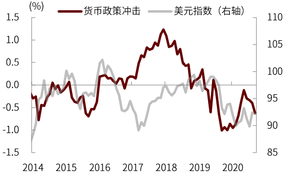 图表:美国货币政策冲击往往引发美元指数上涨…