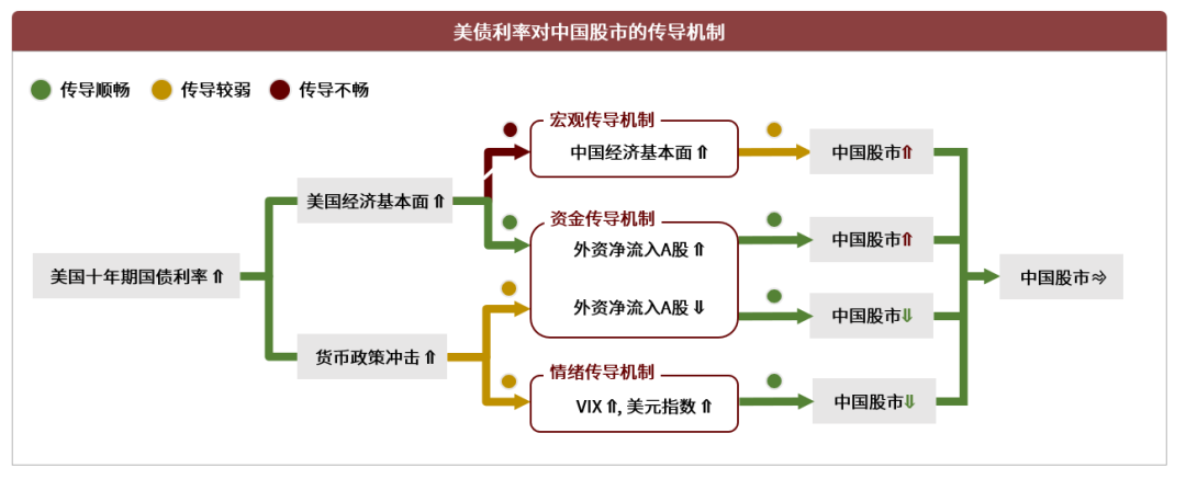 在本报告的下面几个章节,我们将具体讨论美债利率影响中国市场的3种传导机制:
