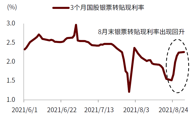 图表:8月下旬银票转贴现利率出现明显回升,可能表示8月份信贷投放较多,银行月末冲票压力下降