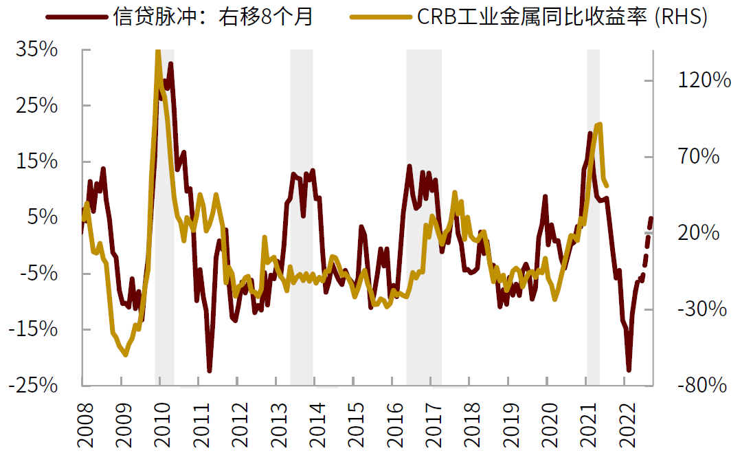 图表:信贷脉冲领先工业金属8个月左右