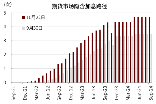 图表:10月份期货市场对美联储2022年的加息预期由一次增加至两次